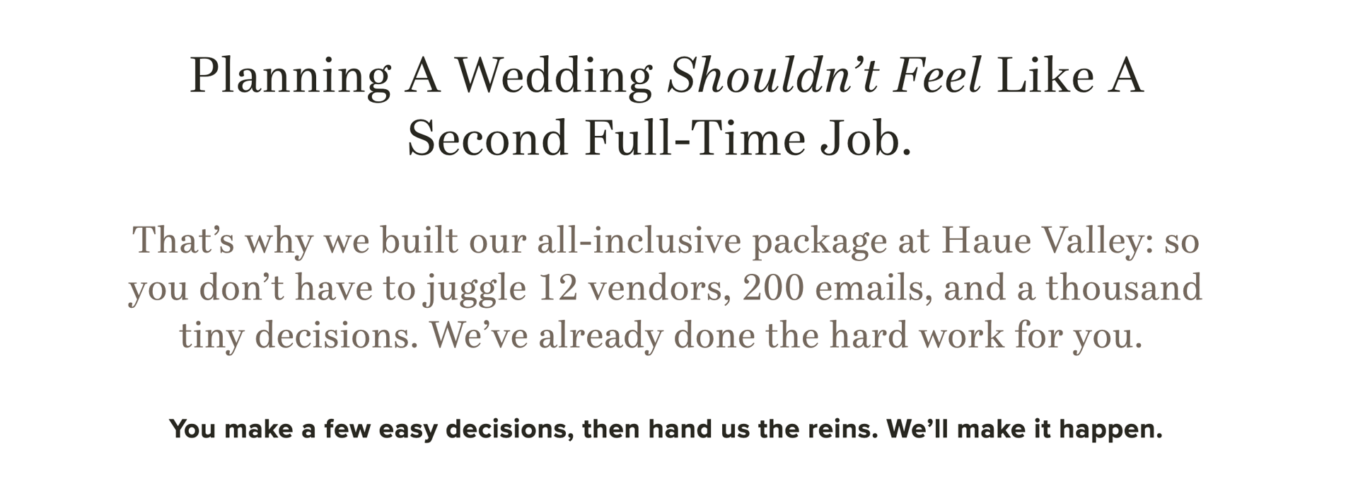 We include SO MUCH in the package to make your wedding day and planning process easy, beautiful and fun!